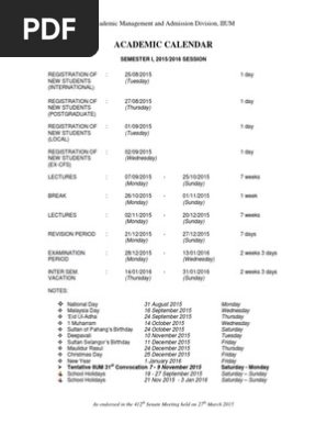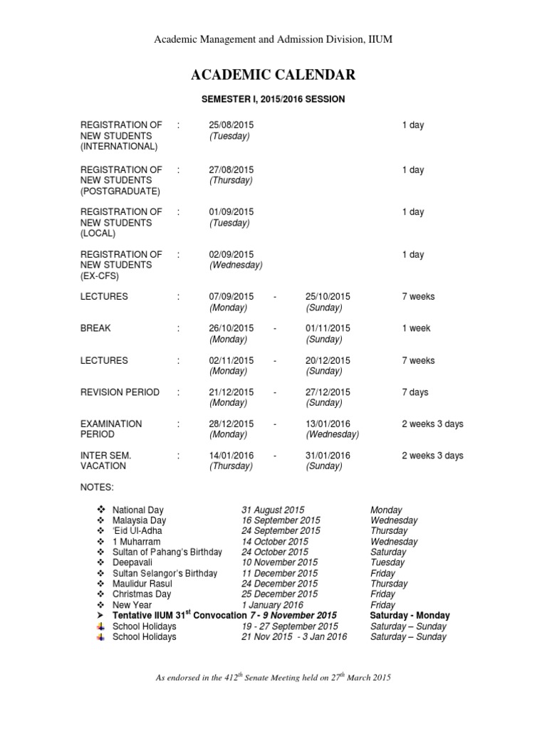 Academic Calendar Academic Management And Admission Division Iium Academic Term Holidays
