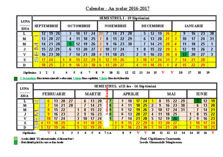 Calendar Cu Anul Scolar 2016 2017 De A Valma