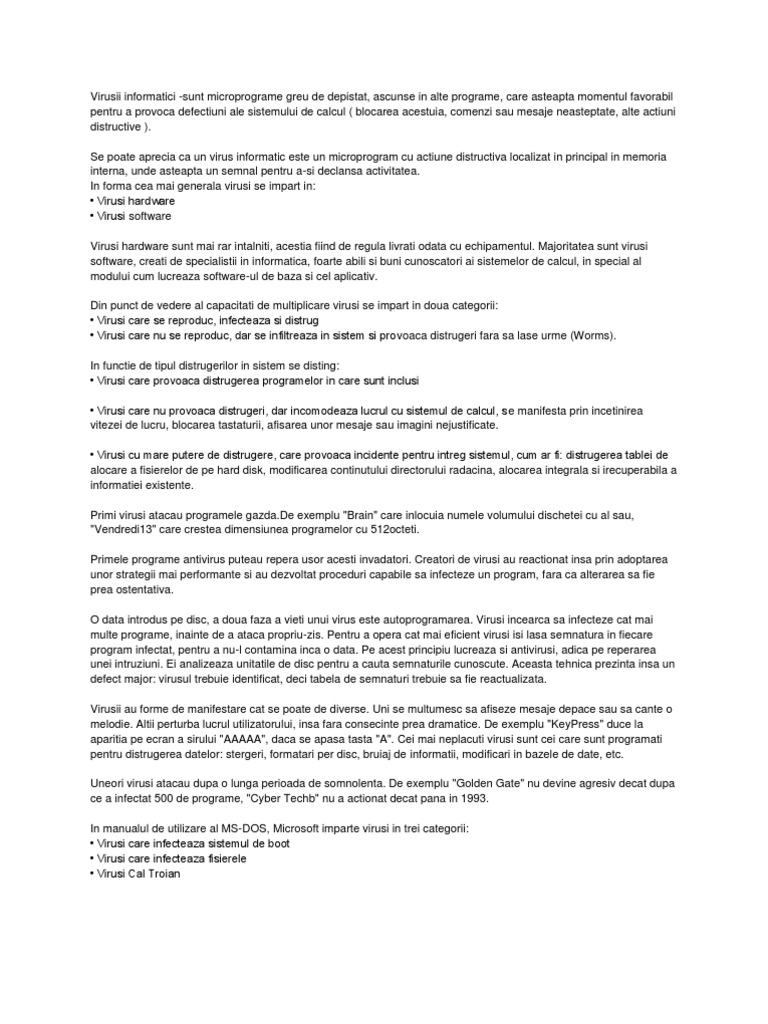 Referat Virusi Informatici Calculatoare 10646 Regielive