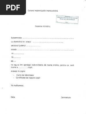 Cerere Indemnizatie Mama Eroina