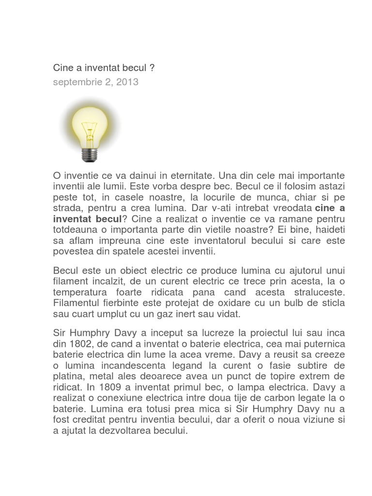 Cine Si Cum A Inventat Becul