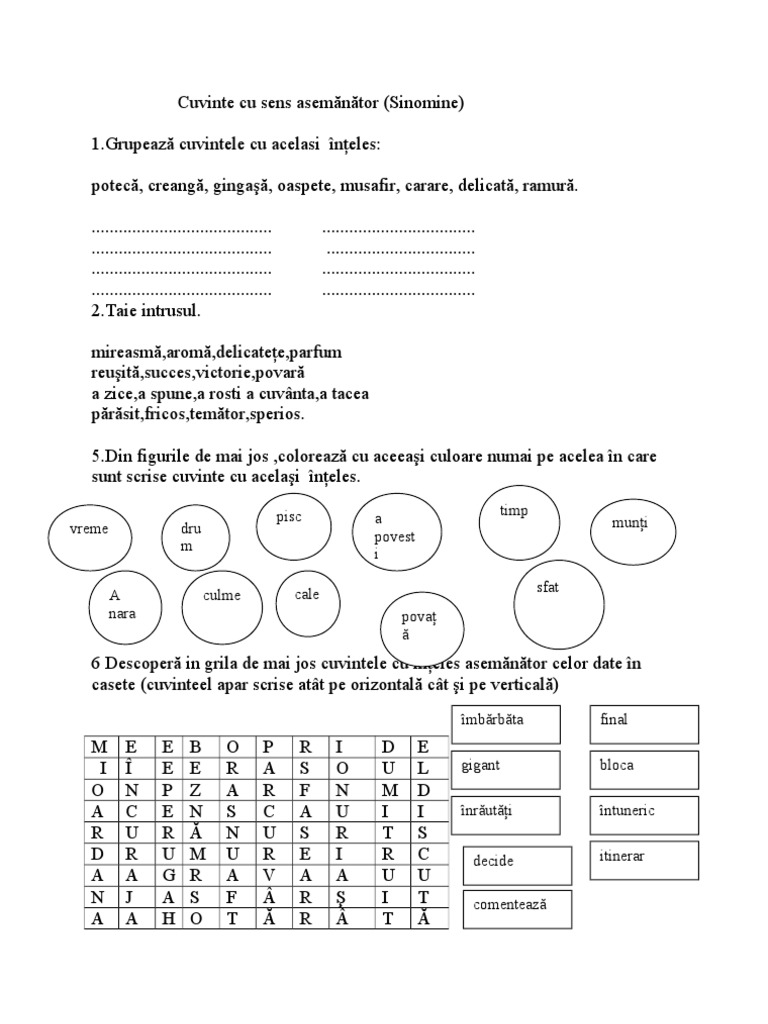 Uneste Cuvintele Care Au Acelasi Sens Si Scrie Perechile Formate Brainly Ro
