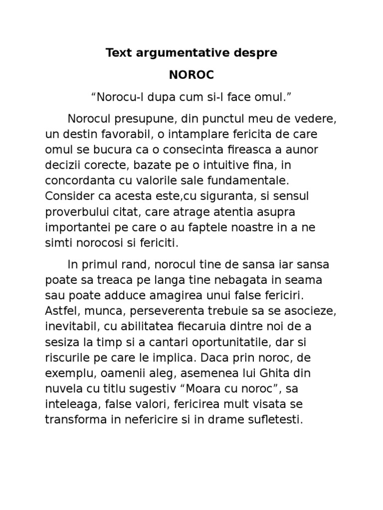 Text Argumentativ Despre Noroc