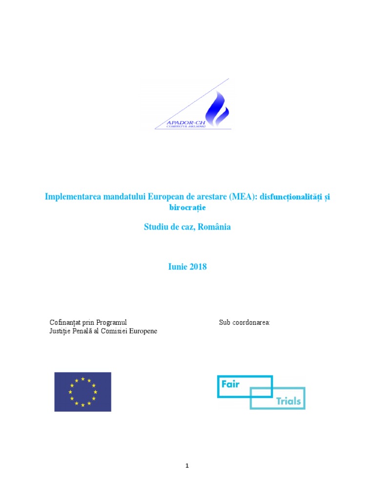 Implementarea Mandatului European De Arestare Mea Disfuncționalități și Birocrație Studiu De Caz Romania