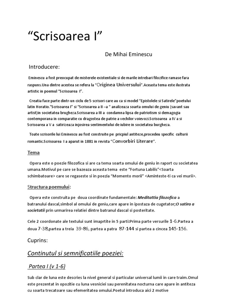 Comentariu Scrisoarea I Mihai Eminescu 166395 Graduo