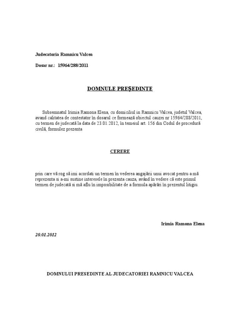 Cerere De Amanare Pt Angajare Aparator Irimia Doc