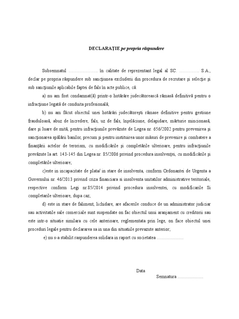 Declaratie Pe Propria Raspundere
