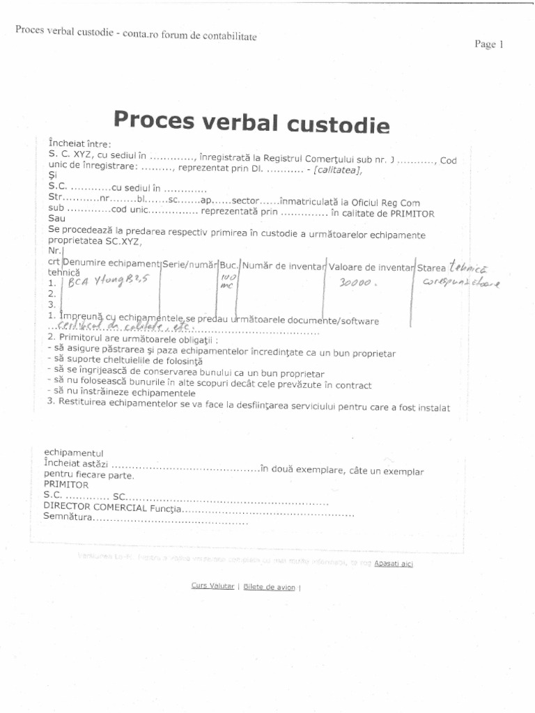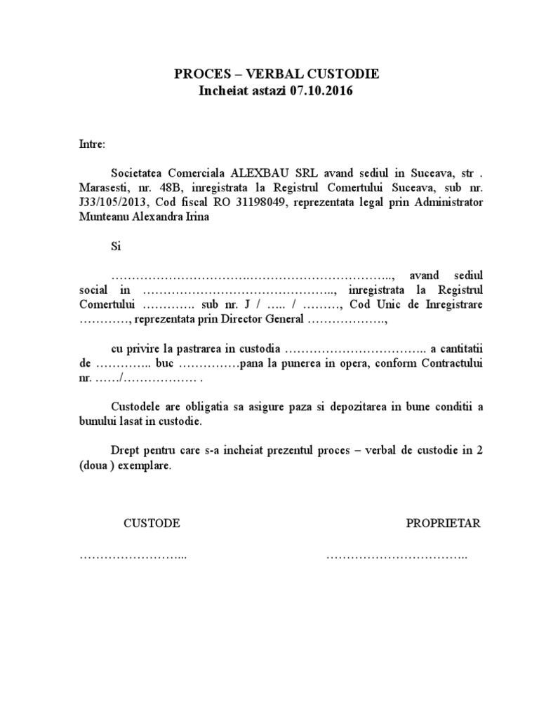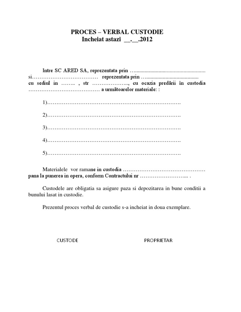 Proces Verbal De Custodie Model