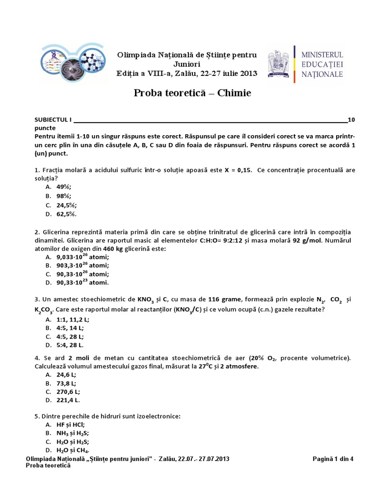 Osj Nationala 2013 Teorie Chimie