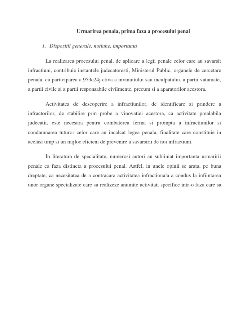 1 Dispozitii Generale Notiune Importanta Urmarirea Penala Prima Faza A Procesului Penal