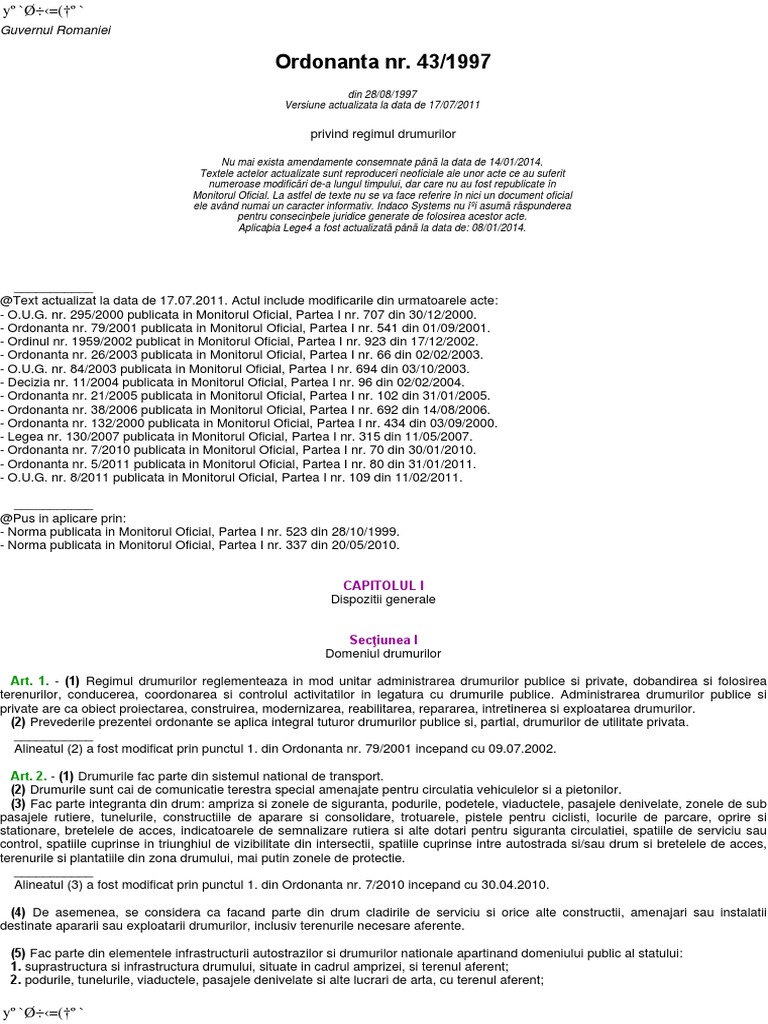 Oug 43 1997 Privind Regimul Drumurilor