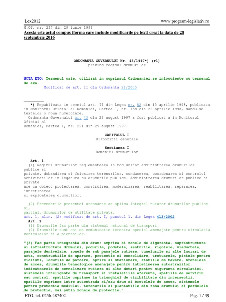 Doc Ordonanta 43 1997 Regimul Drumurilor Bogdan Duceac Academia Edu