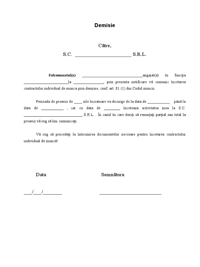 Voi Ce Scrieți In Cererea De Demisie Romania
