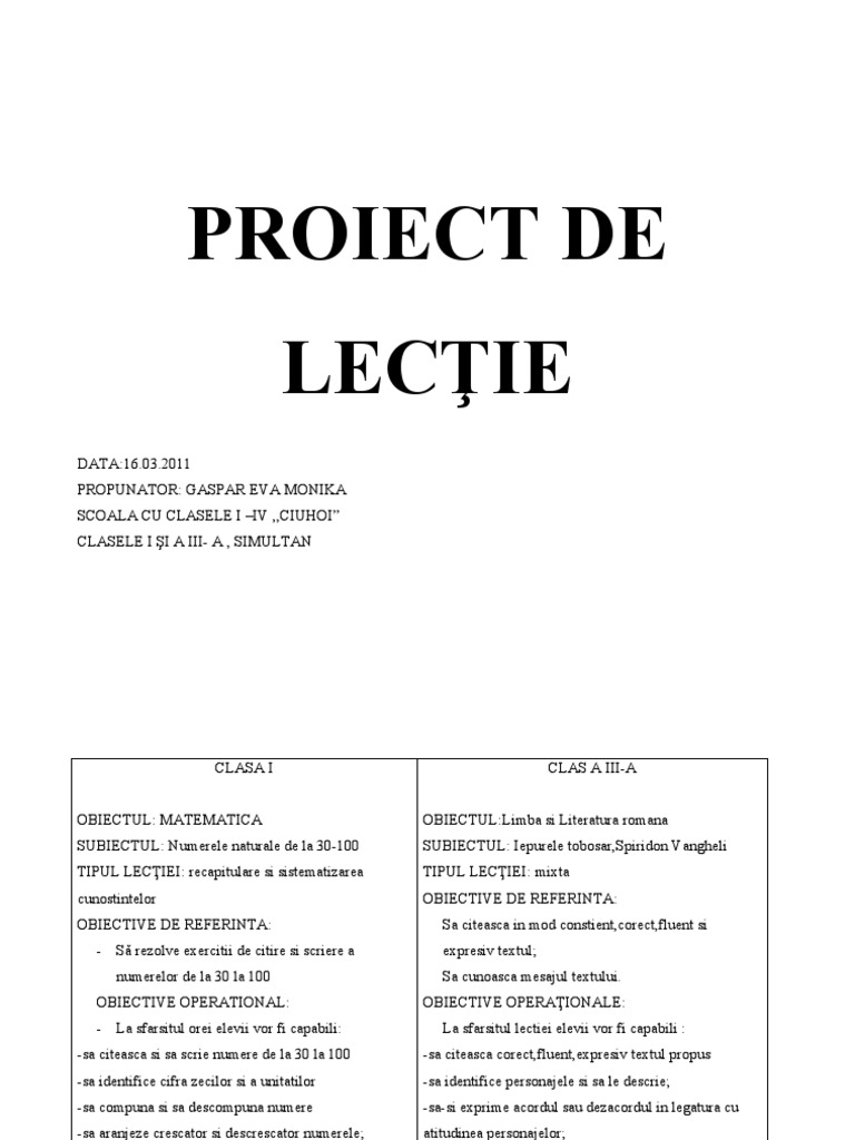 Proiect De Lectie Clase Simultane 19091973 14 08 2018