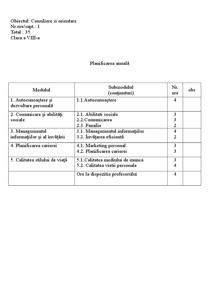 Planificare Dirigentie Clasa A Viii A