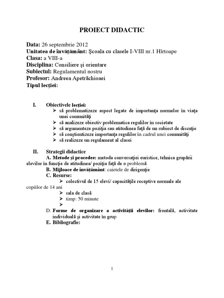 Proiect Didactic Dirigentie Clasa A Viii A Docx