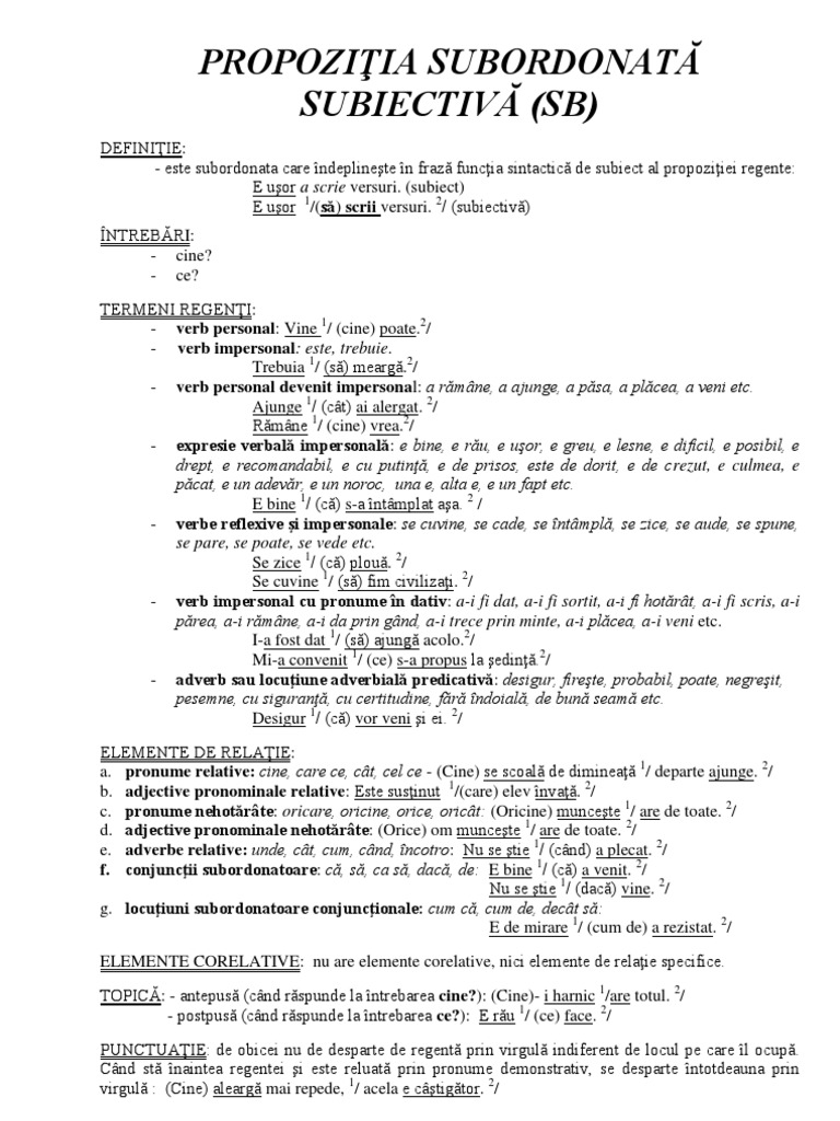 Doc Fisă De Lucru Subiectul Si Propoziţia Subiectivă Miha Mihaela Academia Edu