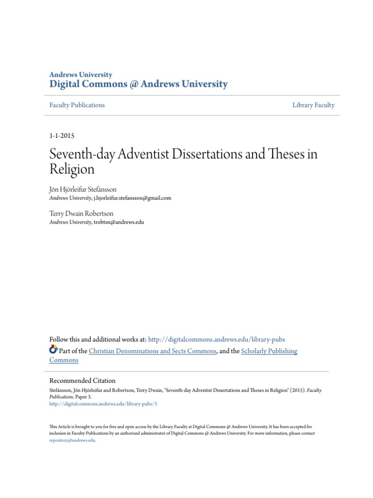 Seventh Day Adventist Dissertations And Theses In Religion Thesis Adventism