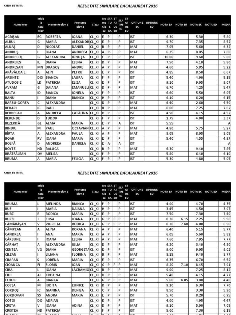 2016 Rezultate Sim Bac Xi Xii Alfabetic