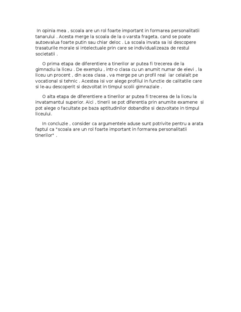 Rolul Scolii In Formarea Personalitatii