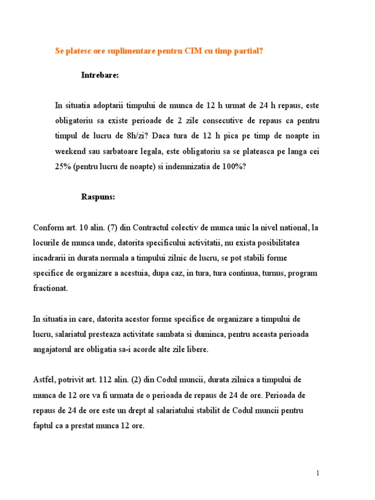Se Platesc Ore Suplimentare Pentru Cim Cu Timp Partial