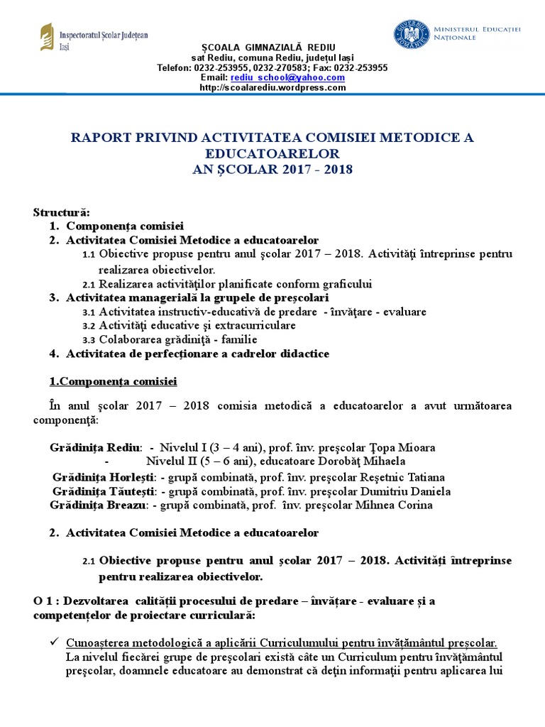Raport Comisia Educatoarelor Pdf Free Download