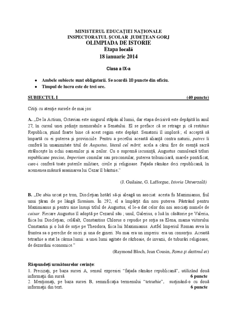 Autentifică te pe site pentru a putea lăsa un comentariu. Istorie 2015 subiecte si bareme olimpiada de istorie ediţia 2015 etapa judeţean ă 11 martie 2015 subiecte şi bareme. 6 drobeta turnu severin 220099. Etapa locală constanţa şi judeţeană 2017 subiecte şi bareme.