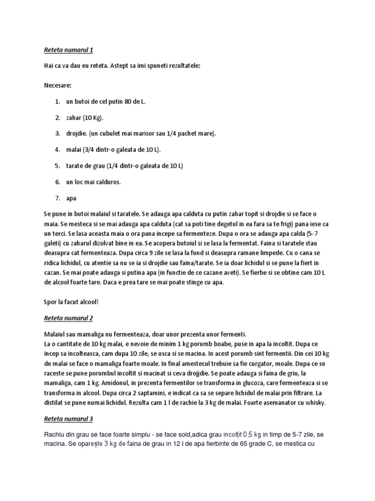 Retete De Alcool Din Cereale Si Din Cartofi Doc